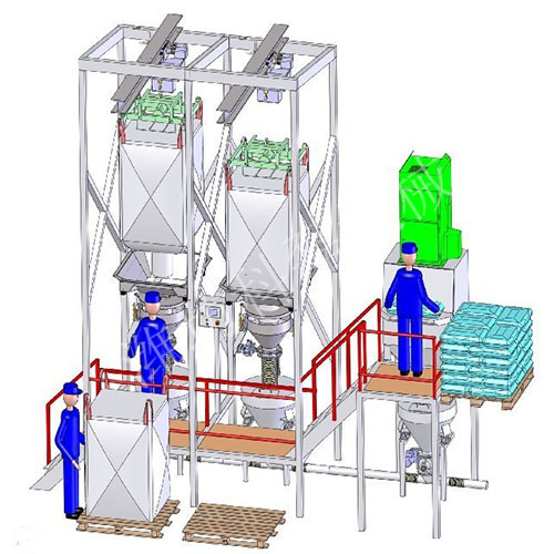 拆(chāi)包機自身配置電(diàn)動葫蘆将物料吊(diao)裝到拆包機的✨機(ji)🙇♀️架上方,然後緩緩(huan)下落,物料袋在緩(huǎn)慢下落過♊程中🏃♀️由(yóu)人🥵工拆開下料口(kou)或者由十字割刀(dāo)(選配)将💋物料袋底(dǐ)部劃開,物料靠重(zhòng)力滑落,使⭐噸袋内(nèi)的粉粒狀物料靠(kào)重力落進貯鬥中(zhong)🙇♀️來完成卸料工作(zuo)。該裝置能有效保(bǎo)護生産環境,減輕(qing)勞動者的工作強(qiang)🧡度,同時還提gao生産(chan)效率,解決了大袋(dai)在開袋工作中因(yīn)吸潮導緻結塊、搭(dā)橋不易出料的♍現(xiàn)象。